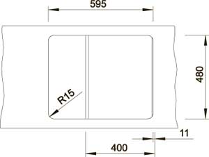 Размеры выреза: 595 х 480 мм