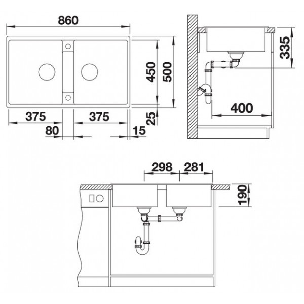 - Возможна установка под столешницу